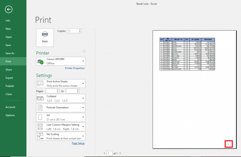 Để kiểm tra, bạn click vào File rồi nhấn Print. Hoặc bạn cũng có thể nhấn tổ hợp phím Ctrl + P để xem kết quả nhé.