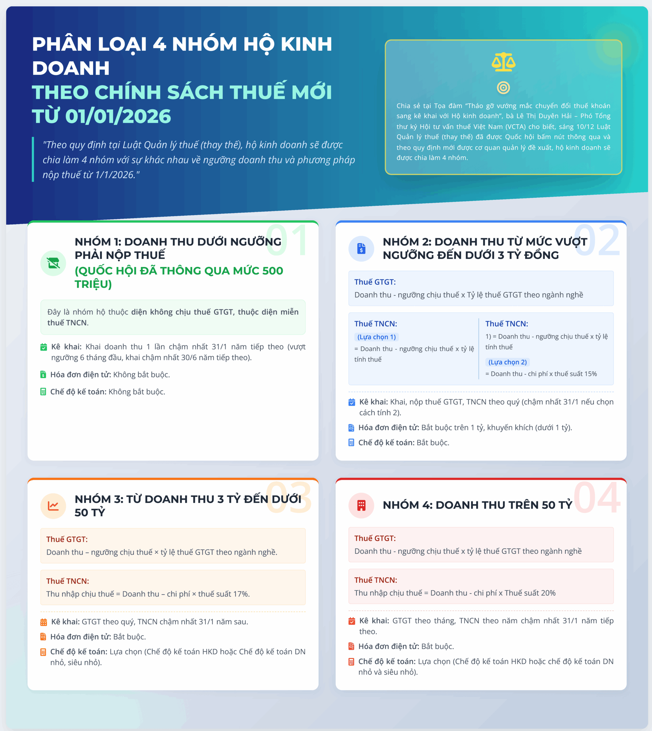 1. Phân loại 4 nhóm hộ kinh doanh theo chính sách thuế mới
