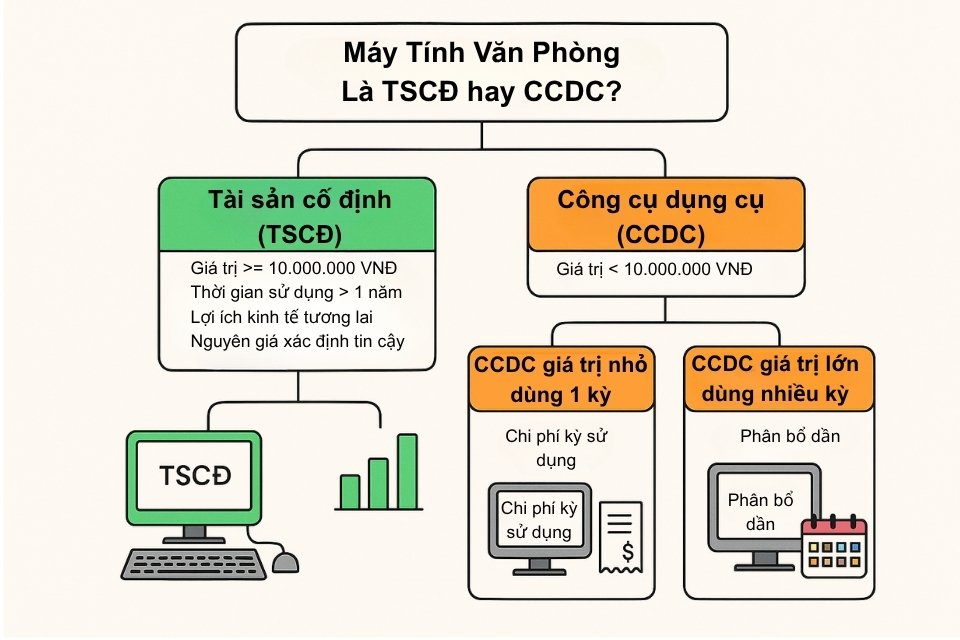 1. Máy tính văn phòng là TSCĐ hay CCDC?