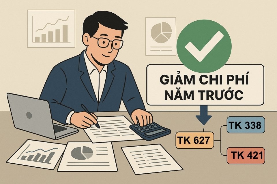 Hạch toán điều chỉnh giảm chi phí năm trước sẽ được thực hiện như sau: