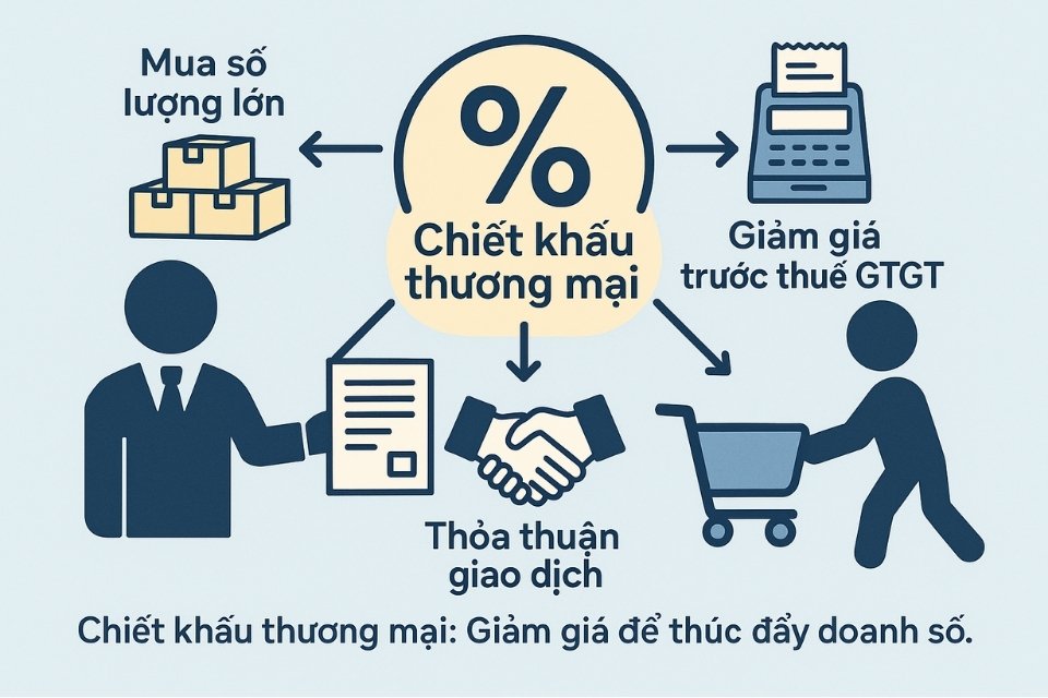 Chiết khấu thương mại là khoản giảm giá người bán dành cho người mua khi mua hàng với số lượng/khối lượng lớn, hoặc đạt được các thỏa thuận cụ thể trong giao dịch mua bán. Chiết khấu thương mại được trừ vào giá trước thuế GTGT.