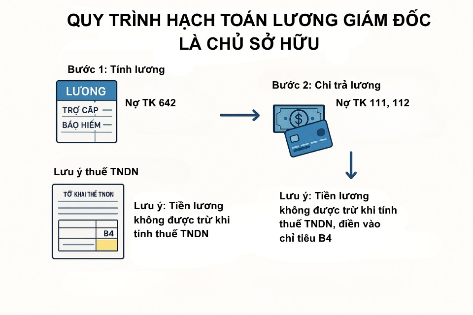 Khi giám đốc đồng thời là chủ sở hữu của công ty TNHH MTV, tiền lương không được tính trừ khi tính thuế TNDN nhưng vẫn phải hạch toán đầy đủ như một khoản chi phí tiền lương bình thường để phản ánh thực tế chi trả.