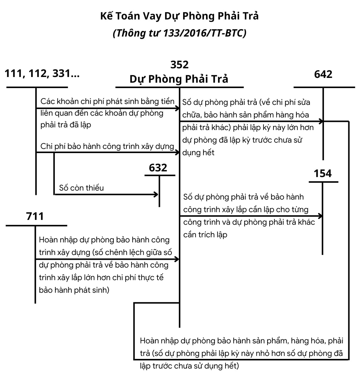 Việc hạch toán các khoản dự phòng phải trả là một phần quan trọng trong công tác kế toán của doanh nghiệp, giúp phản ánh chính xác nghĩa vụ nợ tiềm tàng tại thời điểm báo cáo. Theo Thông tư 133/2016/TT-BTC dành cho doanh nghiệp nhỏ và vừa, tài khoản 352 được sử dụng để theo dõi các khoản mục này.