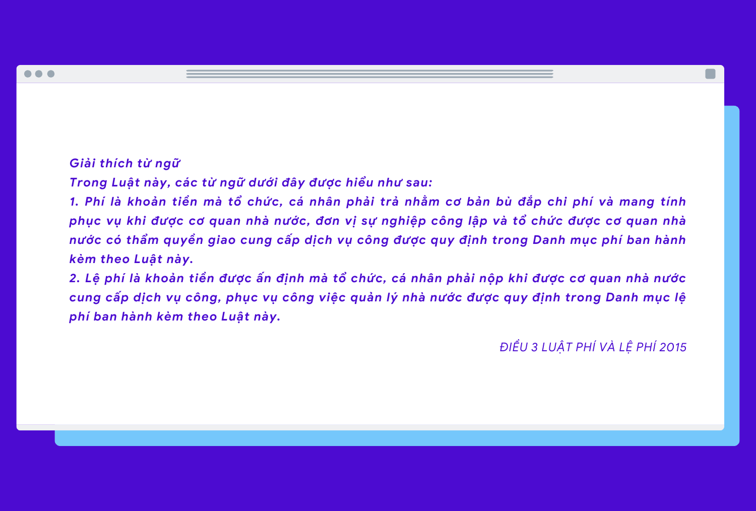 - Phí là khoản tiền mà tổ chức, cá nhân phải trả khi được cơ quan nhà nước hoặc đơn vị sự nghiệp công lập cung cấp dịch vụ công. Số tiền này nhằm bù đắp chi phí hoạt động cung ứng dịch vụ.
