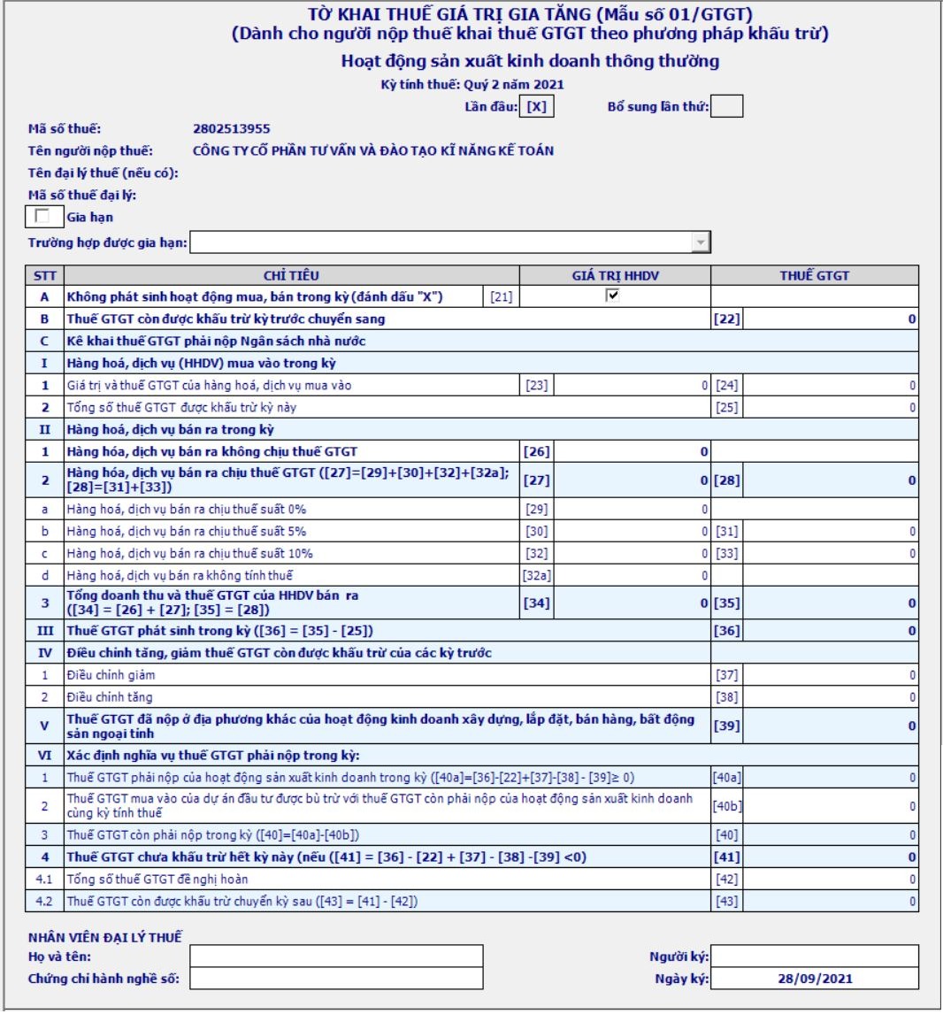 - Doanh nghiệp không phát sinh cả hóa đơn đầu ra và hóa đơn đầu vào được giảm thuế GTGT (Do không mua, bán các mặt hàng được giảm thuế GTGT)