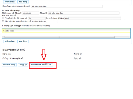 Bước 4: Màn hình hiển thị giấy đề nghị hoàn thuế, người nộp thuế nhập ác dữ liệu gồm: