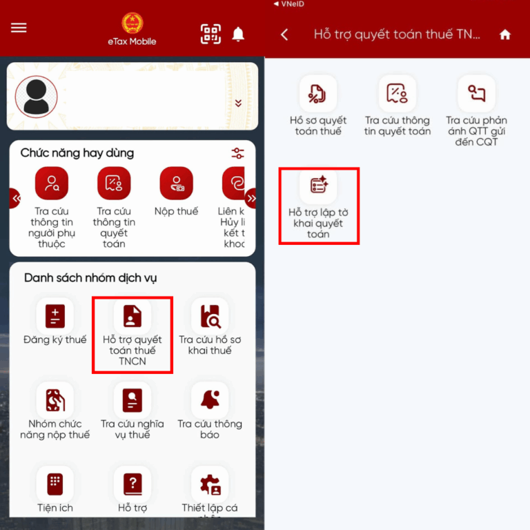 Cách 2: Quyết toán thuế TNCN qua ứng dụng eTax Mobile