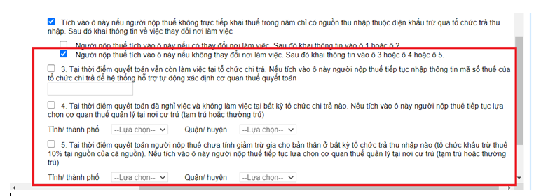 - Nếu thay đổi nơi làm việc, và nơi làm cuối cùng có tính giảm trừ gia cảnh, nộp hồ sơ tại cơ quan thuế nơi làm việc cuối cùng.