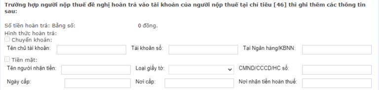 | [46]: | Số thuế hoàn trả cho người nộp thuế: Nhập số thuế đề nghị hoàn vào chỉ tiêu |