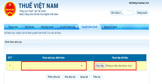 Sau khi nộp tờ khai, tải lên các tài liệu liên quan: