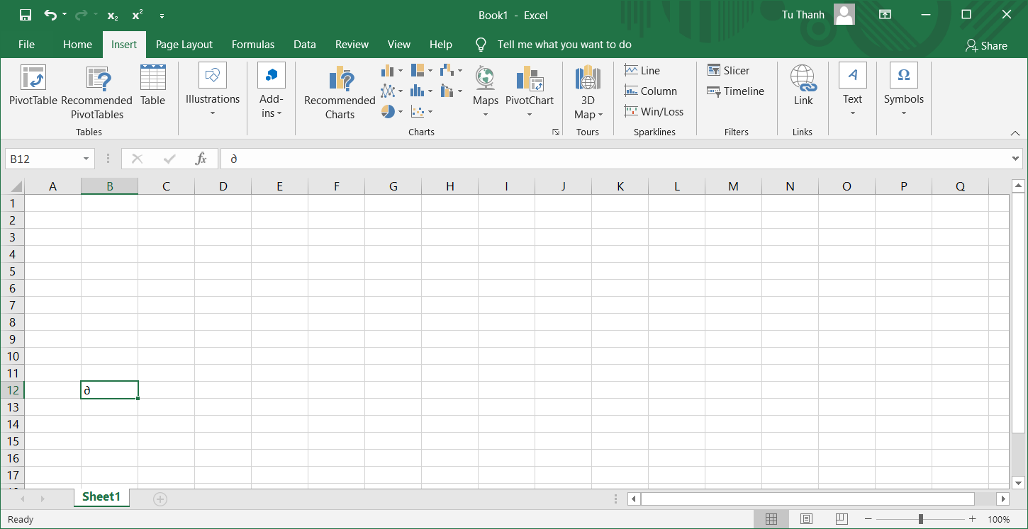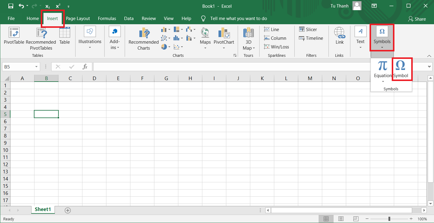 Cách 1: Chèn ký tự đặc biệt trong Excel bằng Symbol