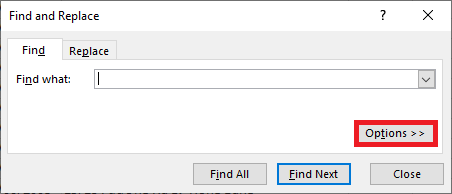 Nếu muốn tìm tên trong nhiều Sheet ta nhấn vào mục Options > >.