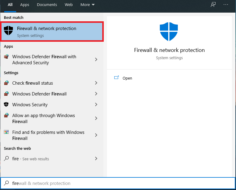 Bước 1: Vào Search > tìm và mở Firewall & network protection.