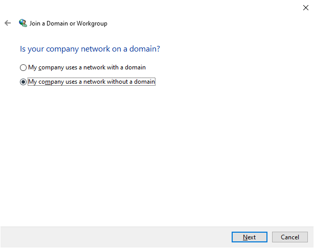 Bước 5: Chọn My company uses a network without a domain > chọn Next.