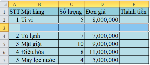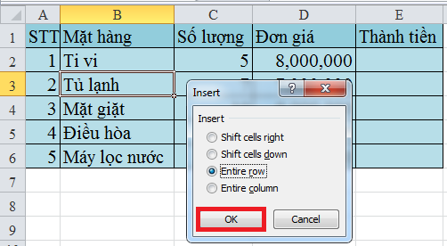 Lưu ý: Thao tác này sẽ chèn thêm 1 hàng bên trên hàng đang chọn.