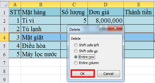 Sau khi nhấn Ok thì cột hay hàng bạn muốn xóa sẽ biến mất.