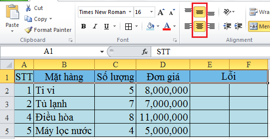 4. Căn chỉnh chữ chính giữa trong ô Excel