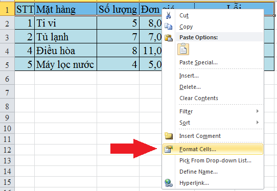 | Unmerge Cells | Tách các ô đã được gộp thành các ô riêng biệt như ban đầu |