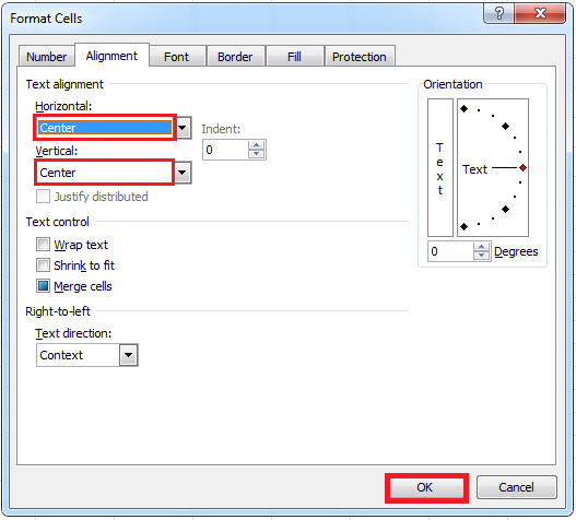 - Chọn biểu tượng Middle Align trong mục Alignment như hình