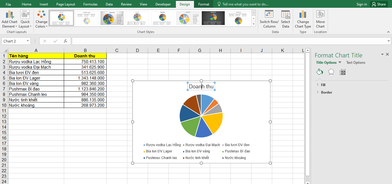 3.1. Thay đổi tiêu đề biểu đồ tròn