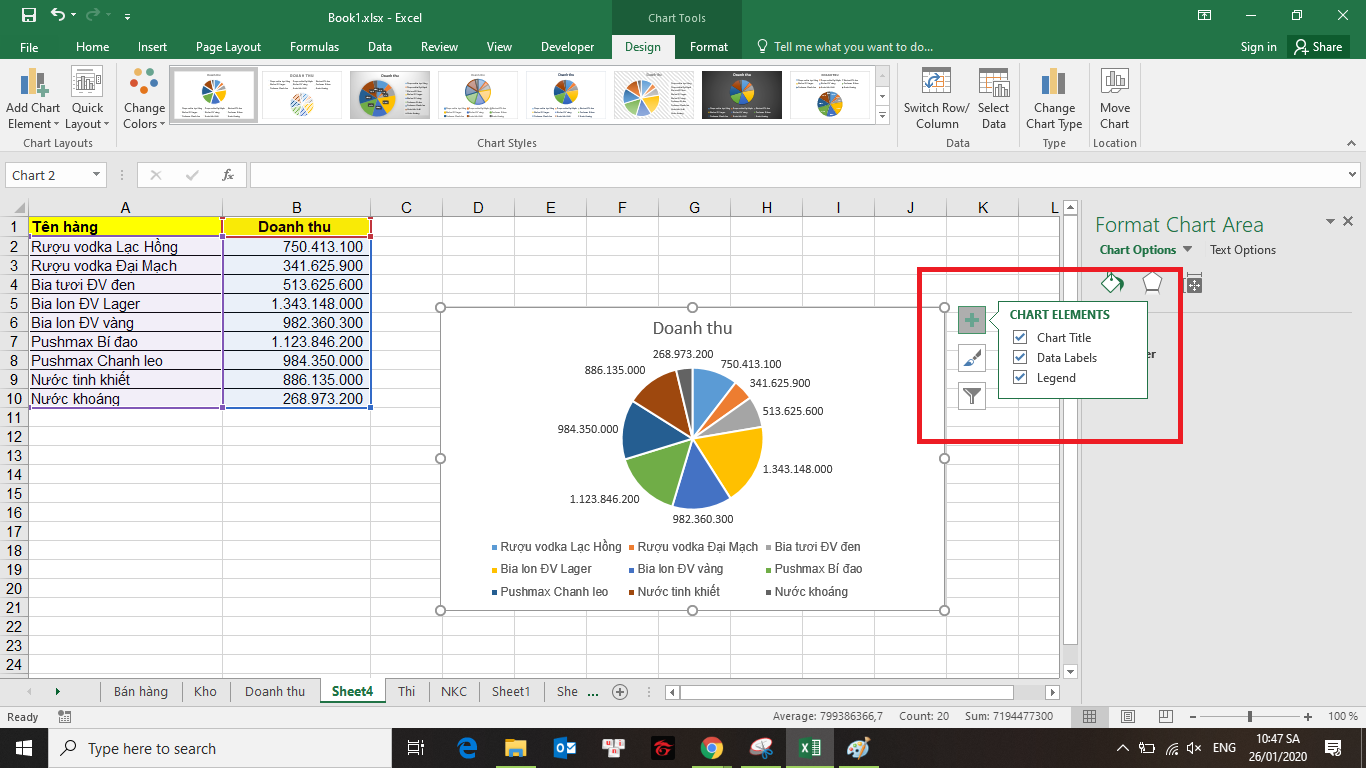 3.3. Thêm nhãn dán dữ liệu vào biểu đồ tròn.