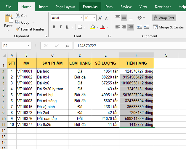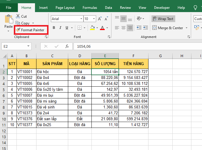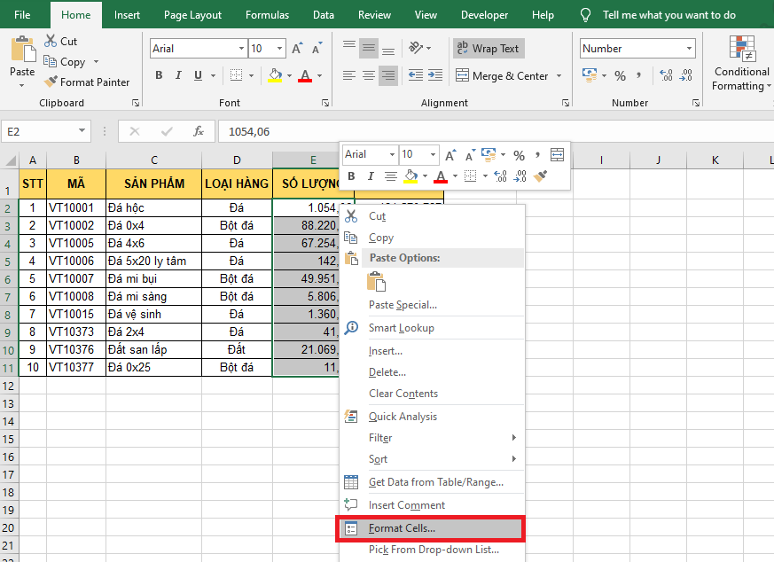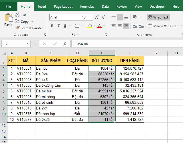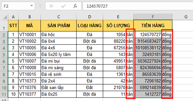 Để thêm đơn vị “Tấn” vào cột E – Số lượng, thực hiện các bước sau:
