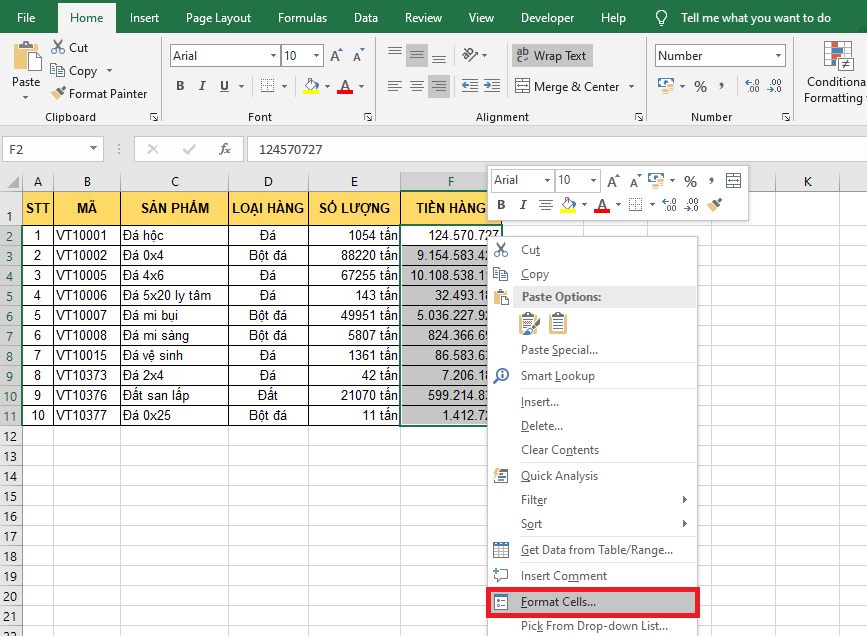 Cách 1: Ghi đơn vị tính nghìn đồng trong excel bằng định dạng Format Cells