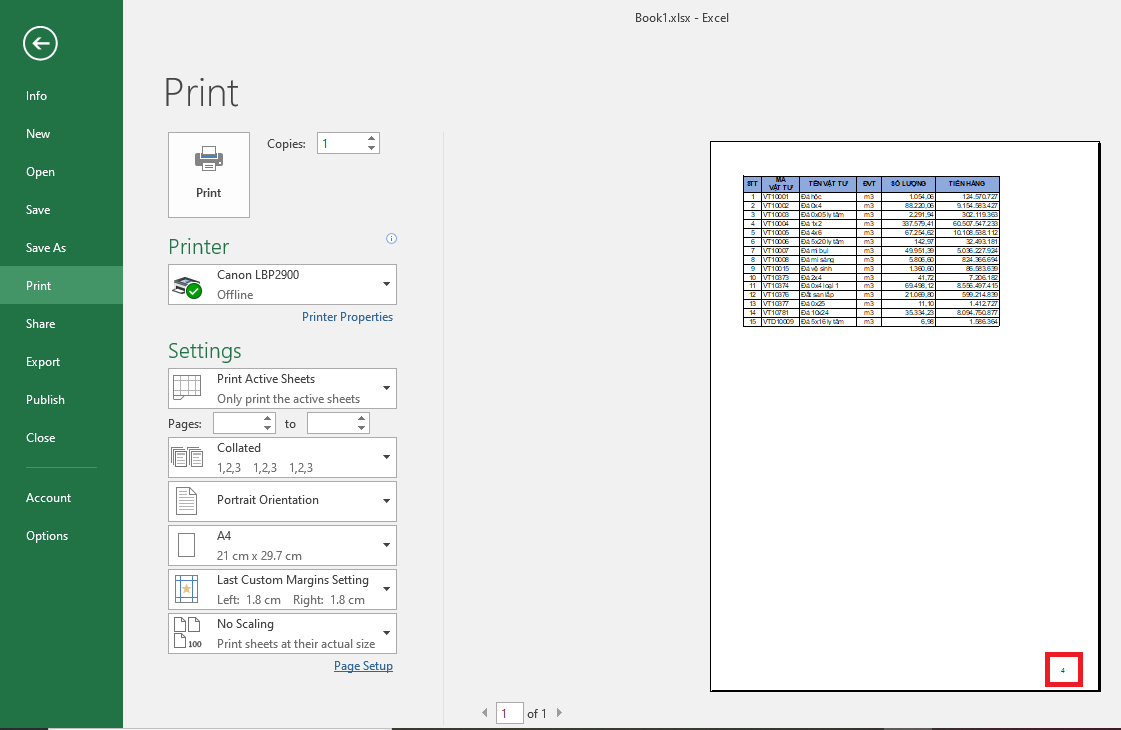 Để kiểm tra, bạn click vào File rồi nhấn Print. Hoặc bạn cũng có thể nhấn tổ hợp phím Ctrl + P để xem kết quả nhé.