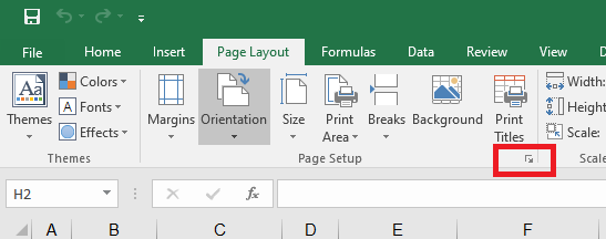 Từ cửa sổ Microsoft Excel bạn đang làm việc, các bạn chọn vào thẻ Page Layout, sau đó click tiếp chuột trái vào biểu tượng mũi tên ở góc bên dưới của phần Page Setup.