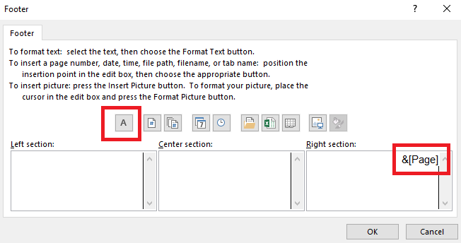Hộp thoại &[Page] ở vị trí các bạn chọn. Các bạn cũng có thể tùy chọn ấn vào biểu tượng chữ A để tùy chỉnh font chữ hay kích thước chữ. Sau khi tùy chỉnh xong, bạn bấm OK để lưu lại các thay đổi.