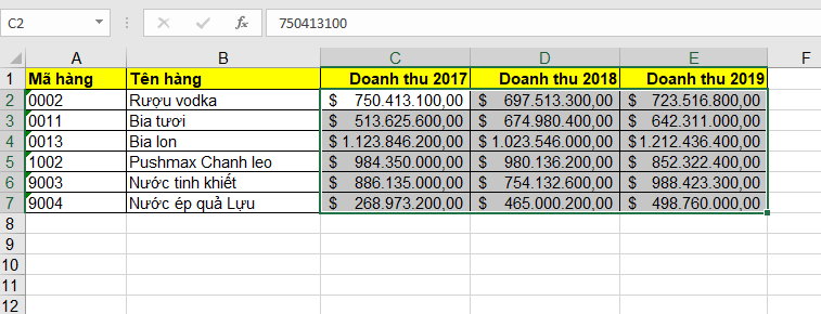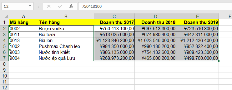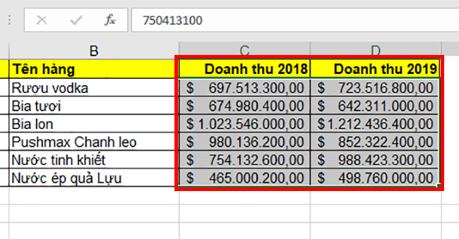 Bước 1: Tiến hành bôi đen toàn bộ vùng dữ liệu/ô cần định dạng số