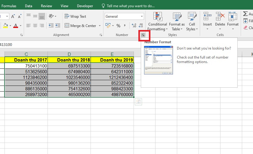 1. Sử dụng định dạng số (Number Formats) có sẵn
