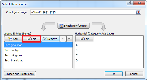 - Tại khung Legend Entries (Series) => chọn Edit.