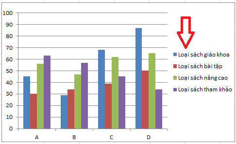 Nếu series sinh ra từ một dải ô có tiêu đề (ví dụ hàng đầu là “Doanh thu”, “Chi phí”), thì chú thích lấy chính tiêu đề đó.