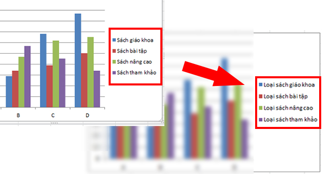 1. Cách làm “chuẩn” đổi tên chú thích qua Select Data cho biểu đồ Excel