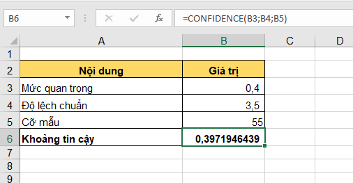 3. Ví dụ thực tế cách sử dụng hàm CONFIDENCE