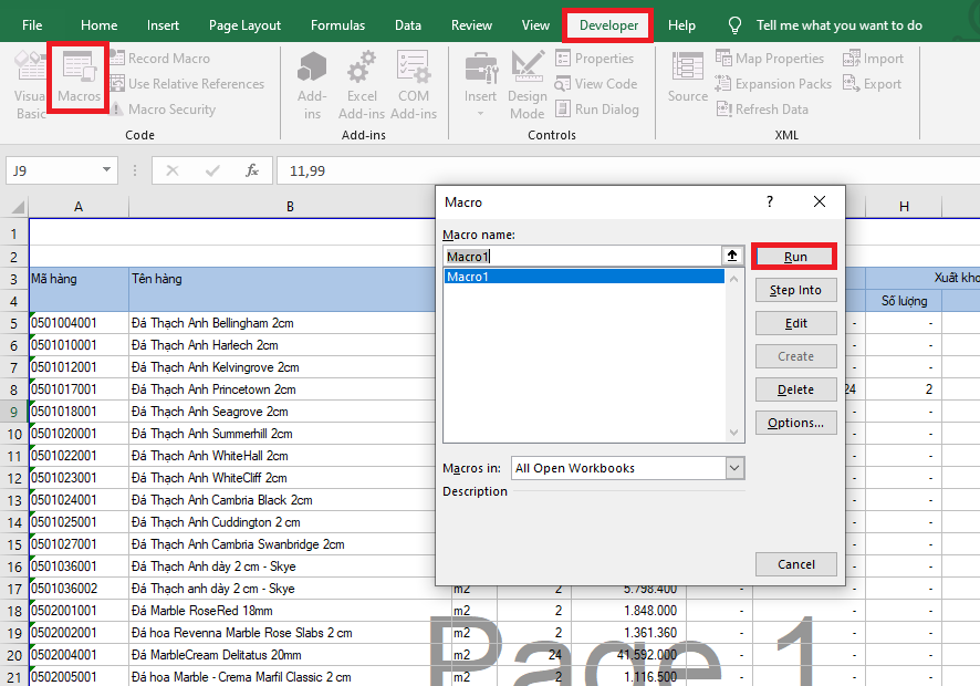 - Cách 1 – Sử dụng Macro: