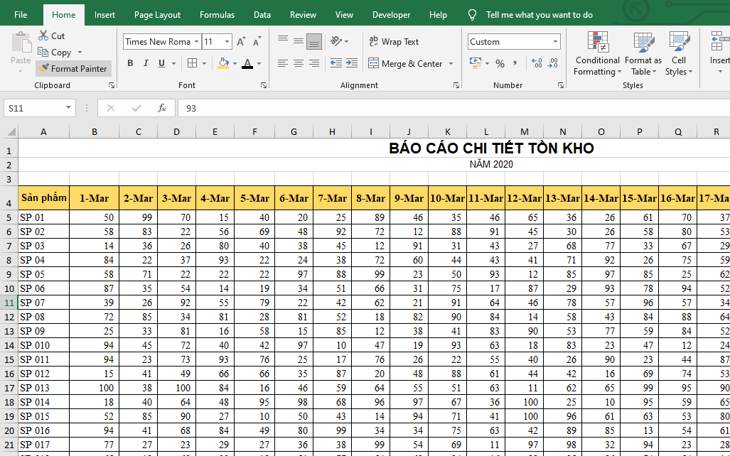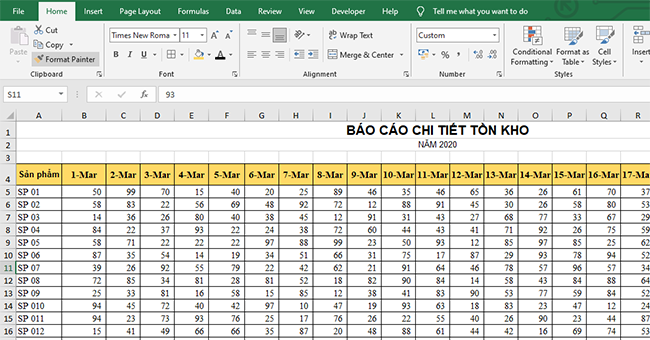 - Toàn bộ dữ liệu nằm trong một Excel Table (Ctrl + T) để tiện lọc, sắp xếp.
