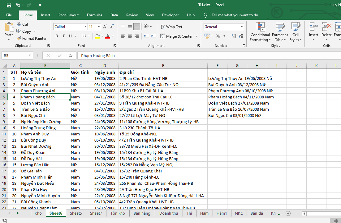 - B6: Đây chính là vùng bạn cần lấy dữ liệu trong Sheet6