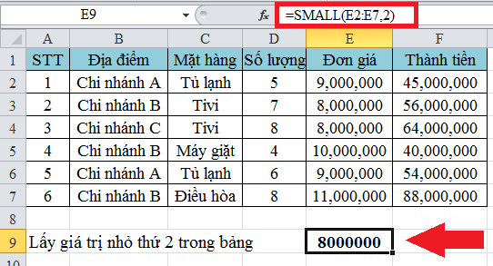 Hàm SMALL trả về giá trị nhỏ thứ k trong một tập dữ liệu số. Đây là cách nhanh để tìm ra giá trị theo thứ hạng cụ thể.