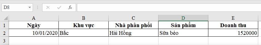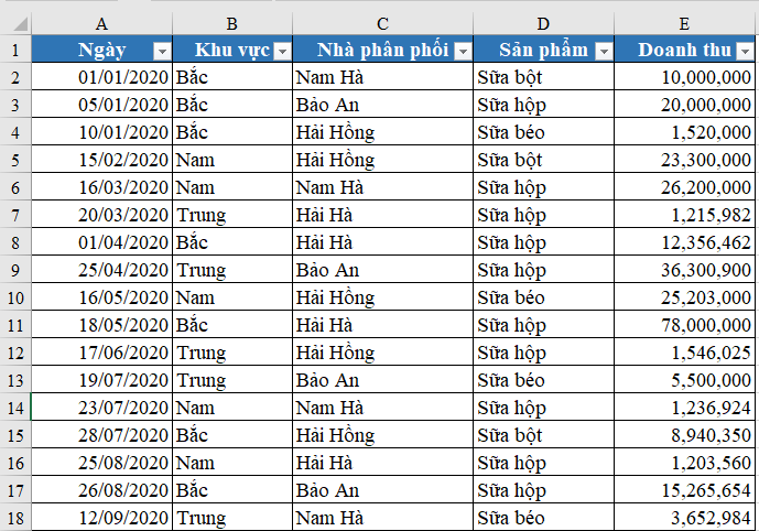 Giả sử bạn có bảng dữ liệu ở Sheet1 như sau: