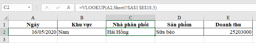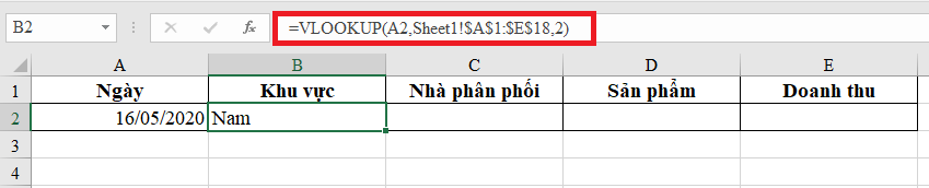 2. Sử dụng hàm Vlookup để lấy dữ liệu từ Sheet khác