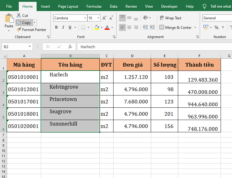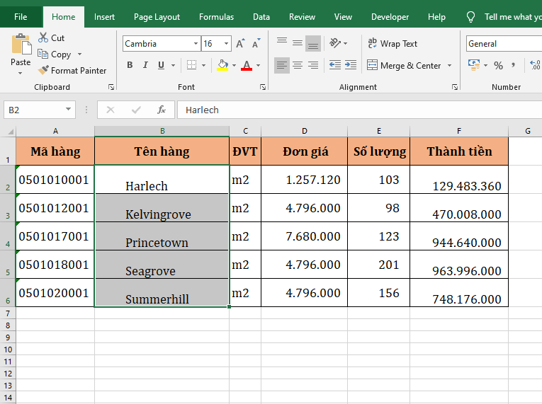 3. Cách căn lề của từng vùng dữ liệu trong excel