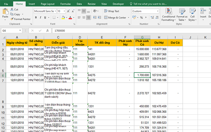 Ví dụ, ta có bảng dữ liệu có độ rộng cột không đều nhau khiến dữ liệu trong ô không hiển thị hết và rất xấu:
