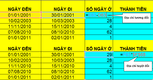 2.4. Ví dụ phân biệt địa chỉ tương đối và tuyệt đối