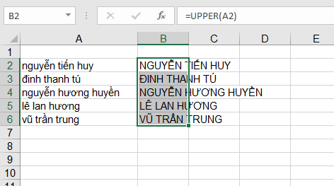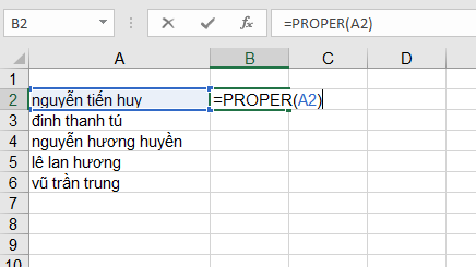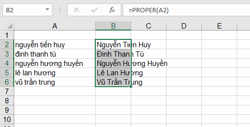 Thông thường, quy tắc viết tên sẽ là viết in hoa chữ cái đầu. Do đó, hàm PROPER rất hữu ích để định dạng danh sách tên nhân viên.