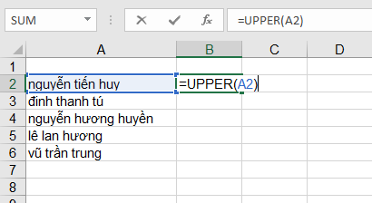 Để sử dụng hàm PROPER, ta thực hiện như sau:
