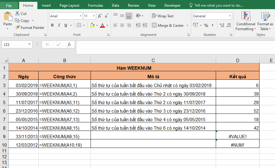 Như vậy, bài viết trên đã hướng dẫn các bạn cách sử dụng hàm WEEKNUM trong Excel. Chúc các bạn thành công!
