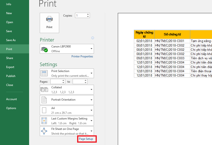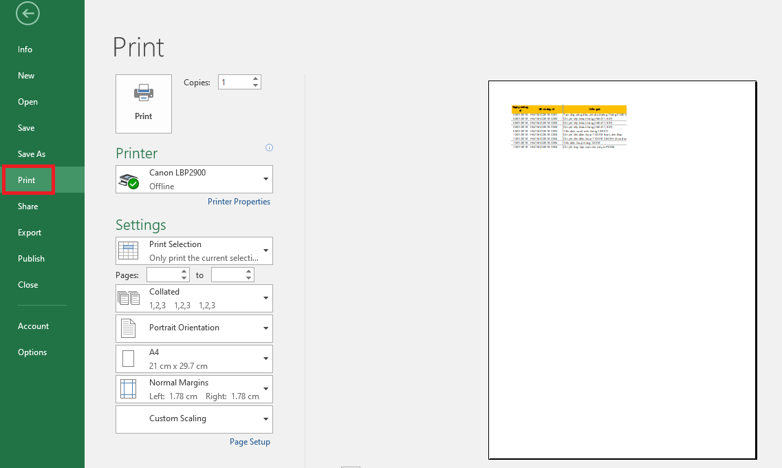 Print Selection là tính năng trong Excel cho phép in phần dữ liệu được bôi đen (tùy chọn) thay vì in toàn bộ trang tính.