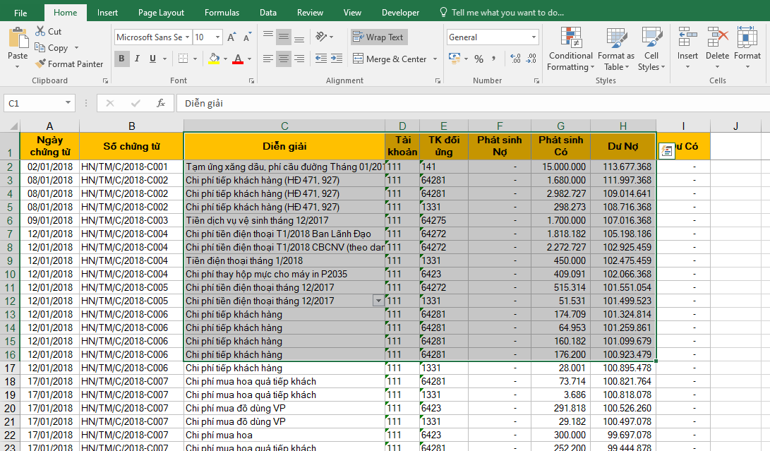| Đặt vùng chọn làm vùng in cố định (Print Area) | Sau khi bôi đen dữ liệu, chọn Page Layout → Print Area → Set Print Area. Lần in sau Excel sẽ tự hiểu đây là vùng cần in. |